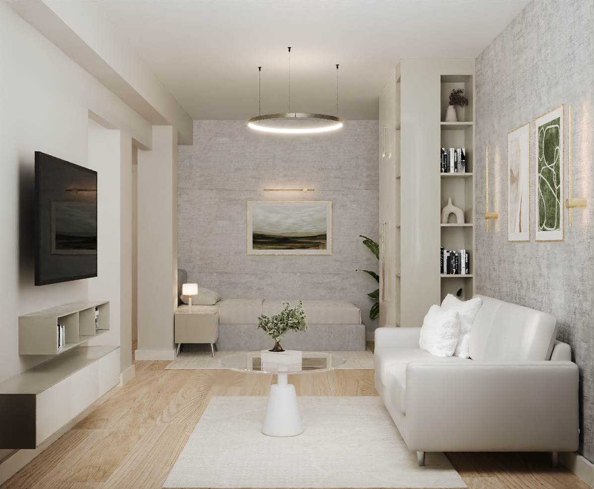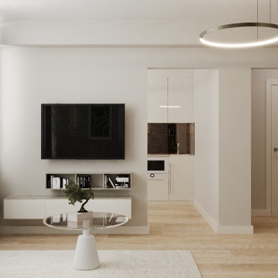 Wohnzimmer mit Küche, 2 stk Schlafzimmer, Badezimmer mit Dusche, Modern Stil