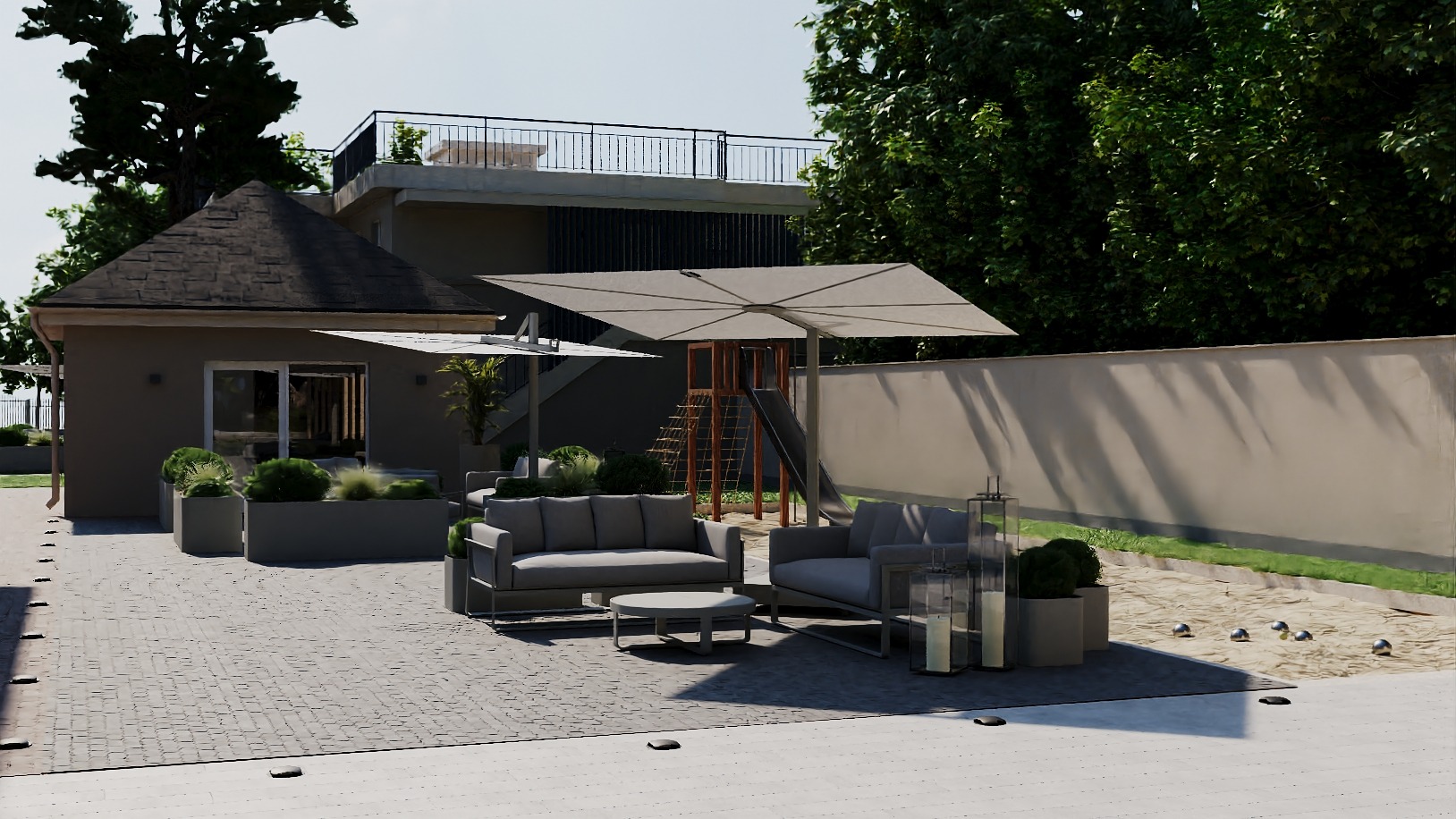 Villa Betreten Sie die Welt der Modernität und Raffinesse und entdecken Sie die Innenräume der Wohneinheit Villa, die für alle Bewohner eine ruhige Atmosphäre.
