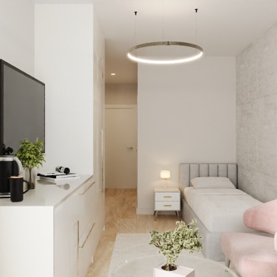 Our unique 20 + 5 square meter residential unit offers exclusive comfort to all its residents. Upon entering the Lavender residential unit, you are immediately captivated by the atmosphere of luxury and elegance. The spacious living room and tastefully furnished kitchenette allow you to relax comfortably and prepare your own meals in the apartment.
