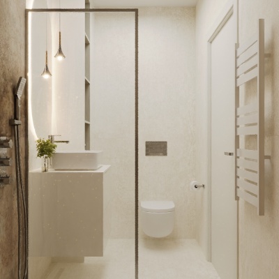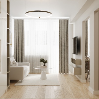 Lakosztály konyhával, 1 db hálószoba, Mosdó zuhanyzóval, Letisztult stílusú