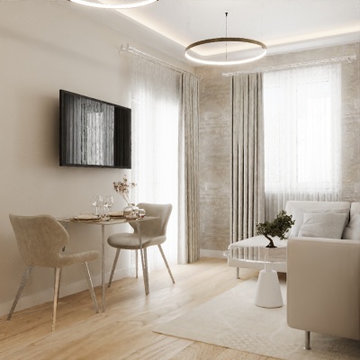 Unsere 35 Quadratmeter große Suite bietet allen Bewohnern einzigartigen Komfort und Exklusivität. Im geräumigen Wohnzimmer und in der geschmackvoll eingerichteten Küche können Sie bequem entspannen und in der Suite Ihre eigenen Mahlzeiten zubereiten. Das Schlafzimmer ist eine Insel der Ruhe und ungetrübten Ruhe, in der jedes Detail perfekt mit der warmen und intimen Atmosphäre des Zuhauses harmoniert.