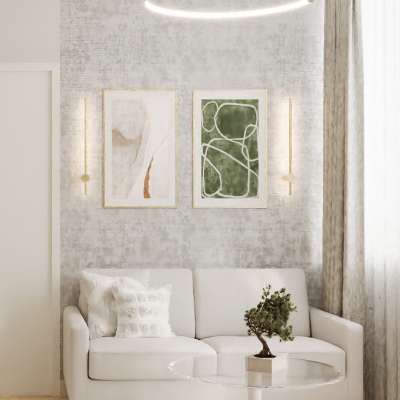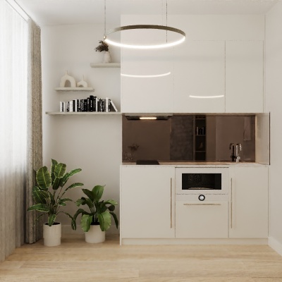 Living room with kitchen, 1 bedroom, Bathroom with shower, Clean modern style