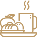 Fresh fruits, pastries, sweet delicacies, fresh fruits, fruit juices, juices, teas, coffee selection